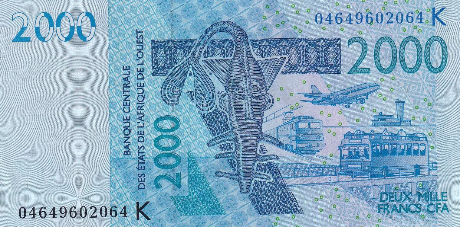Banknote West African States 2000 Francs Mask Fishs 2004 Letter K Senegal P 716kb